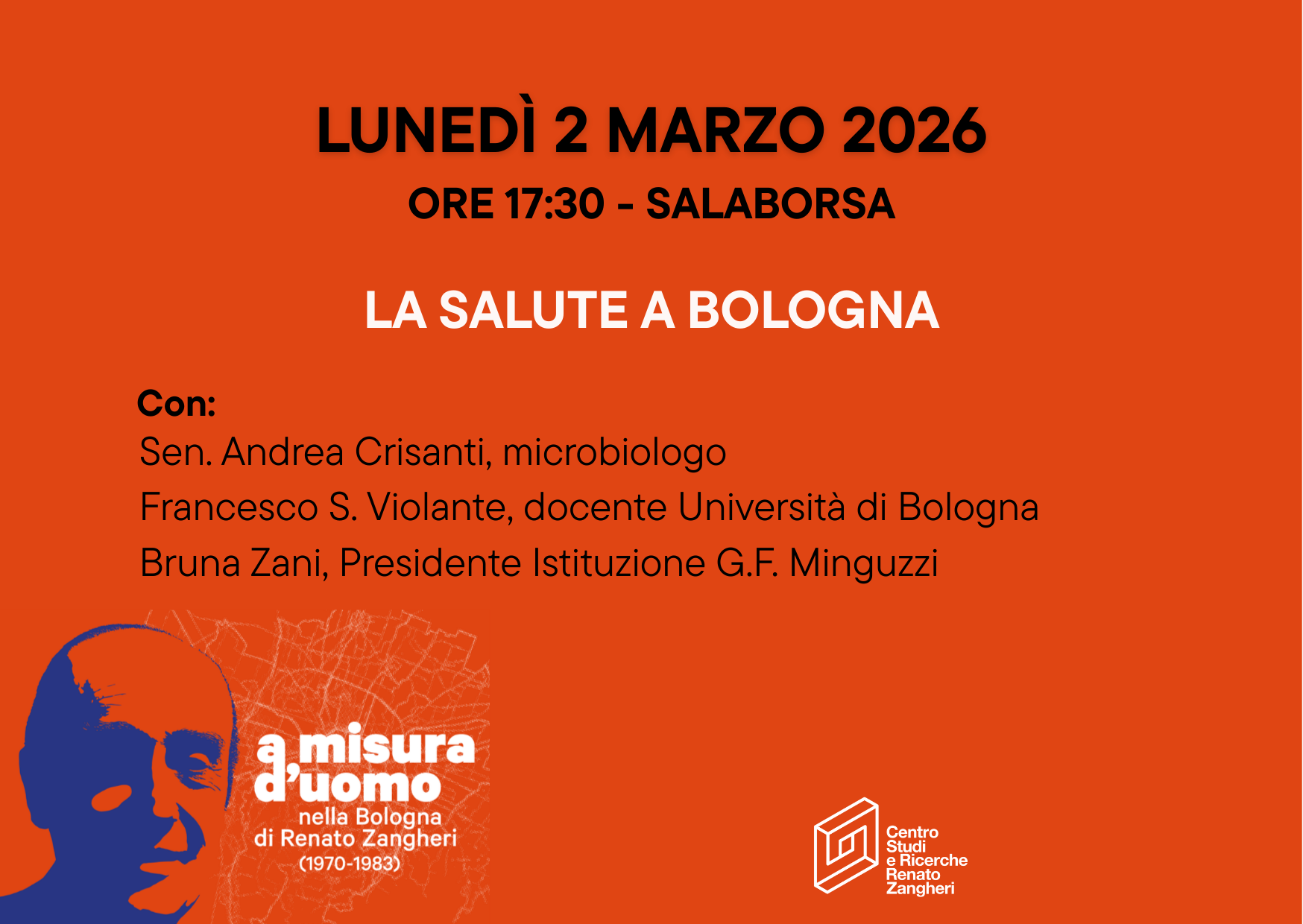 A cura del Centro studi e ricerche "Renato Zangheri", il 2 marzo 2026 alle ore 17.30 presso la Salaborsa (Piazza del Nettuno, 3) si svolgerà questa iniziativa nell'ambito della mostra "A misura d'uomo. Nella Bologna di Renato Zangheri (1973-1980)"